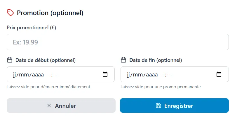 Promotions produit (modale)