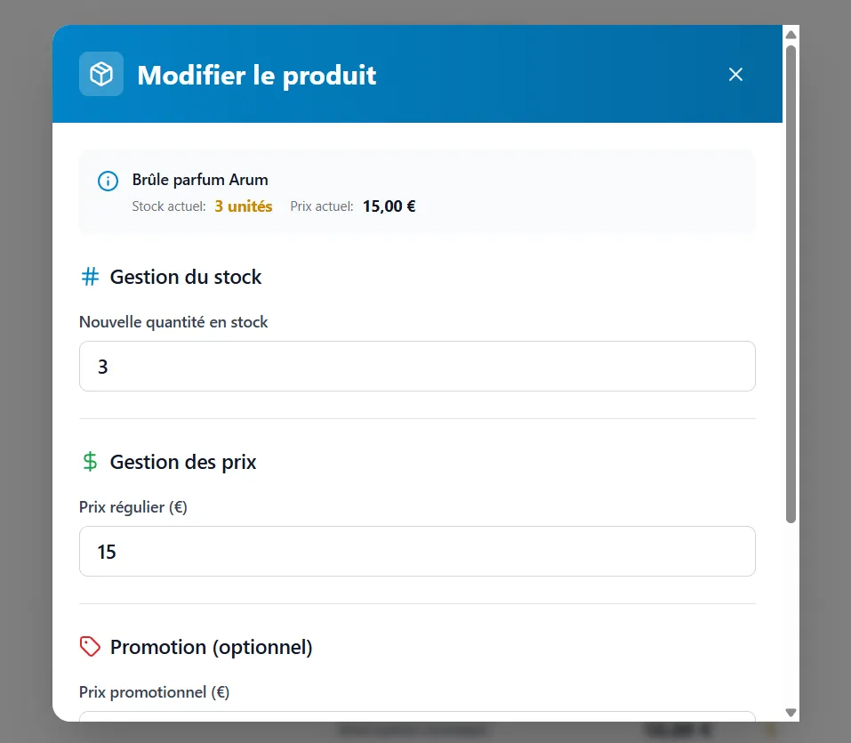 Modifier stock & prix rapidement